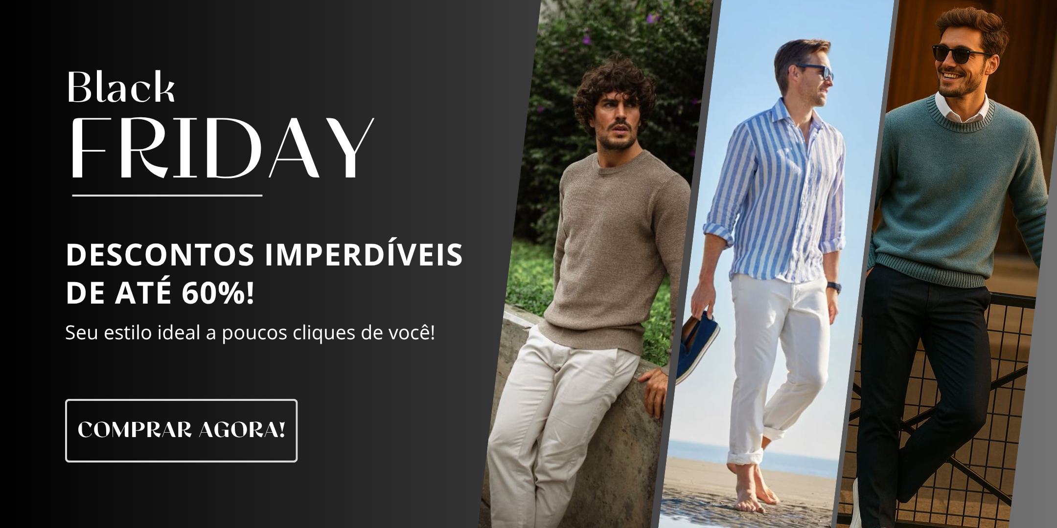 Com curadoria cuidadosa, trabalhamos para trazer o que há de melhor no mundo da moda masculina, desde peças clássicas até as mais modernas. Seja para o dia a dia ou para ocasiões especiais, temos o look perfeito para você se sentir confiante e elegante.