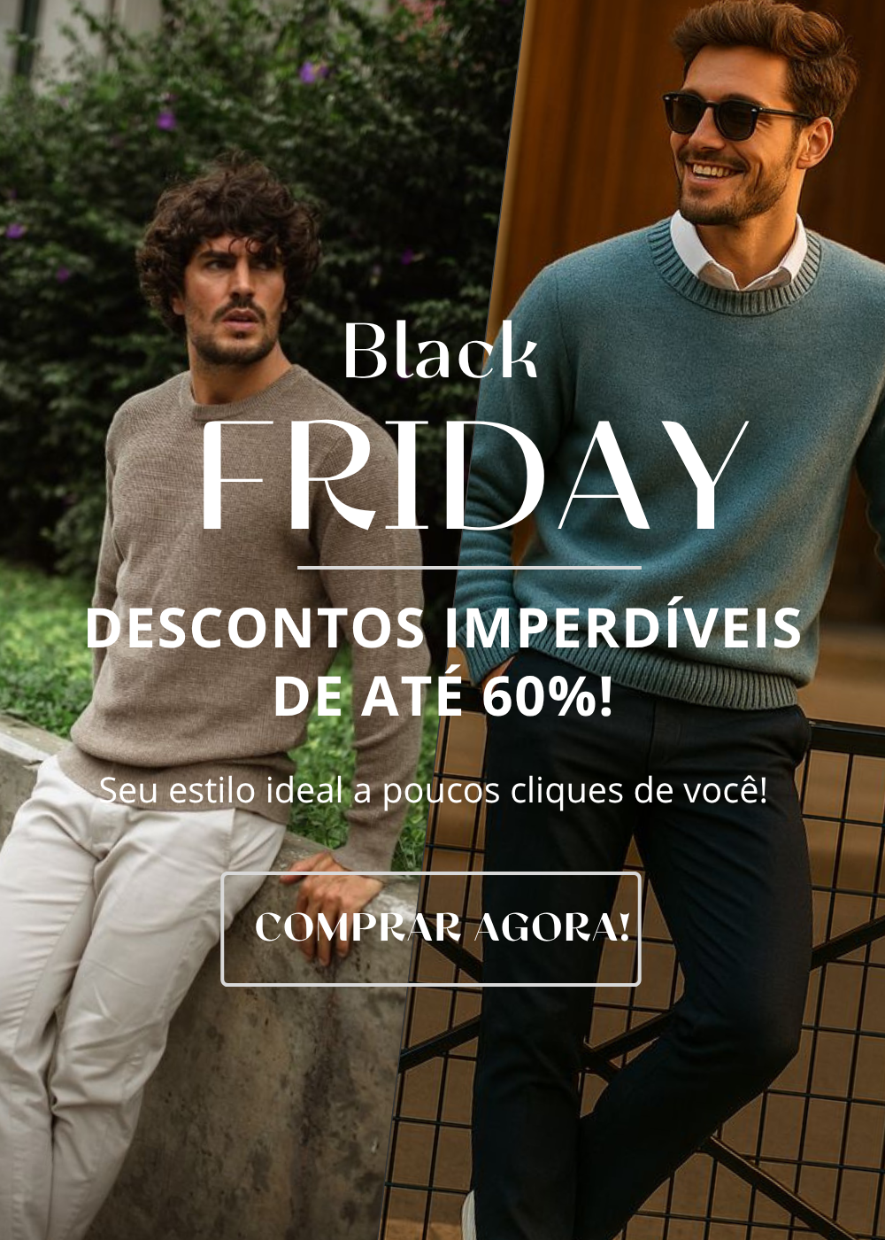 Com curadoria cuidadosa, trabalhamos para trazer o que há de melhor no mundo da moda masculina, desde peças clássicas até as mais modernas. Seja para o dia a dia ou para ocasiões especiais, temos o look perfeito para você se sentir confiante e elegante.